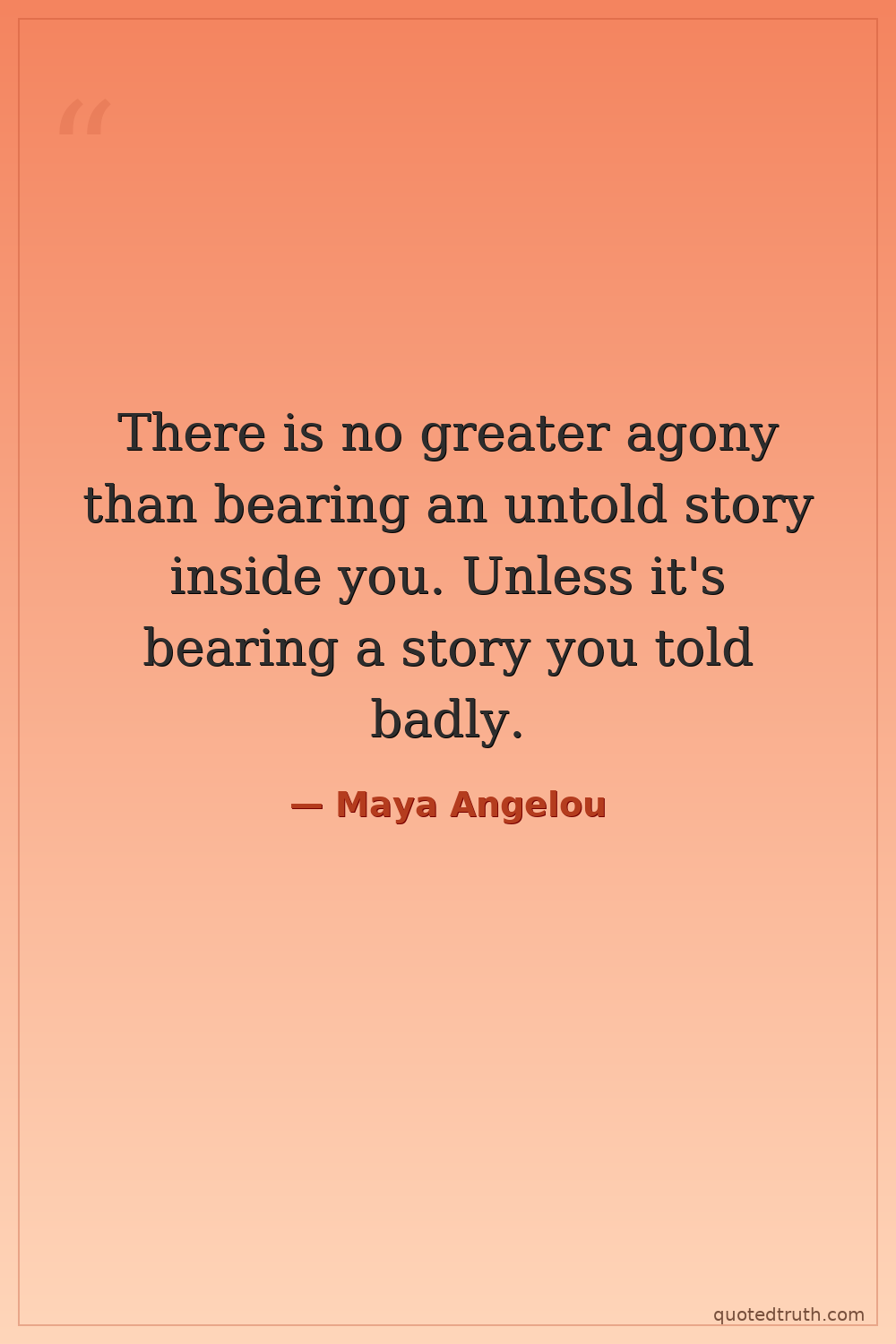 There is no greater agony than bearing an untold story inside you. Unless it's bearing a story you told badly.