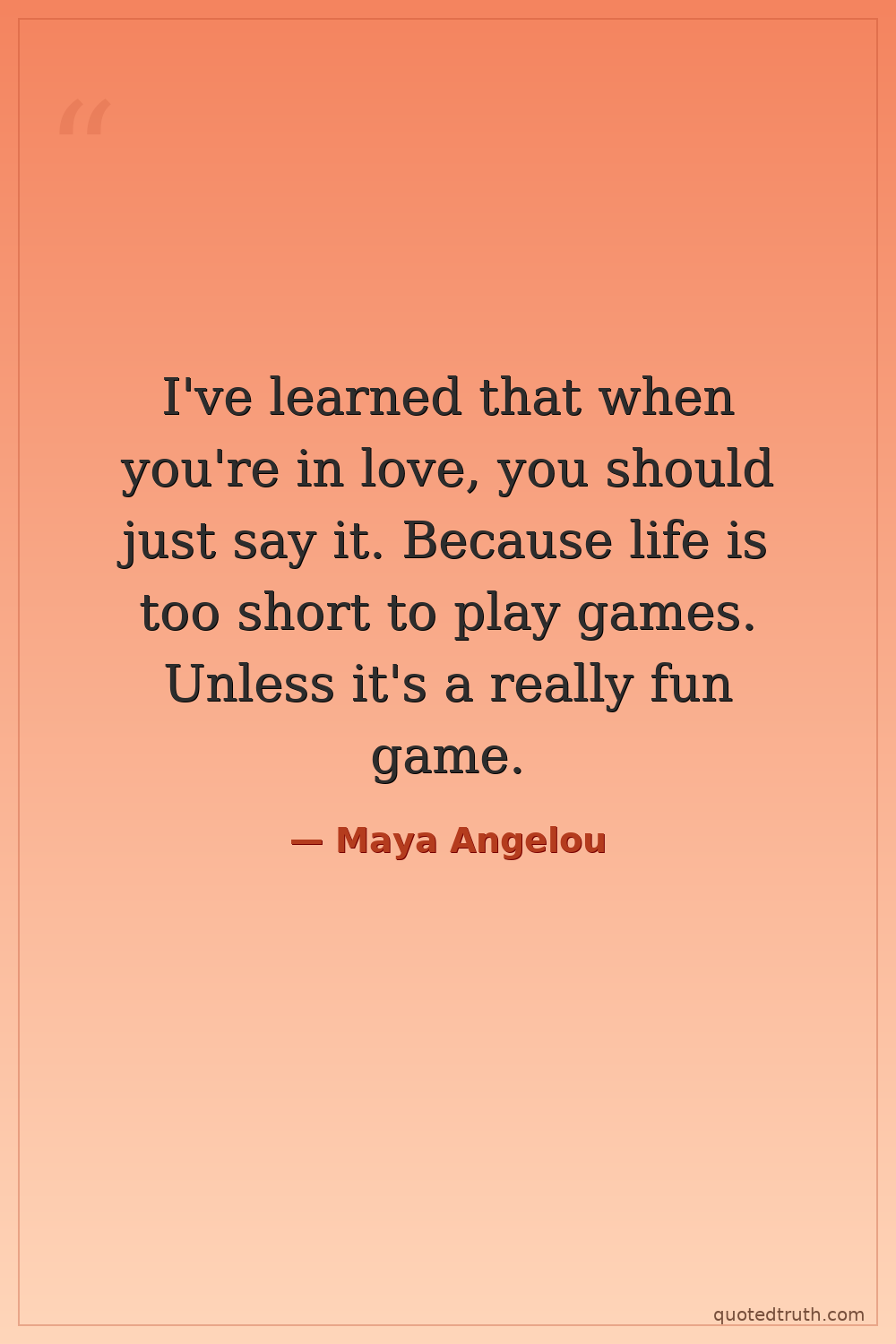 I've learned that when you're in love, you should just say it. Because life is too short to play games. Unless it's a really fun game.