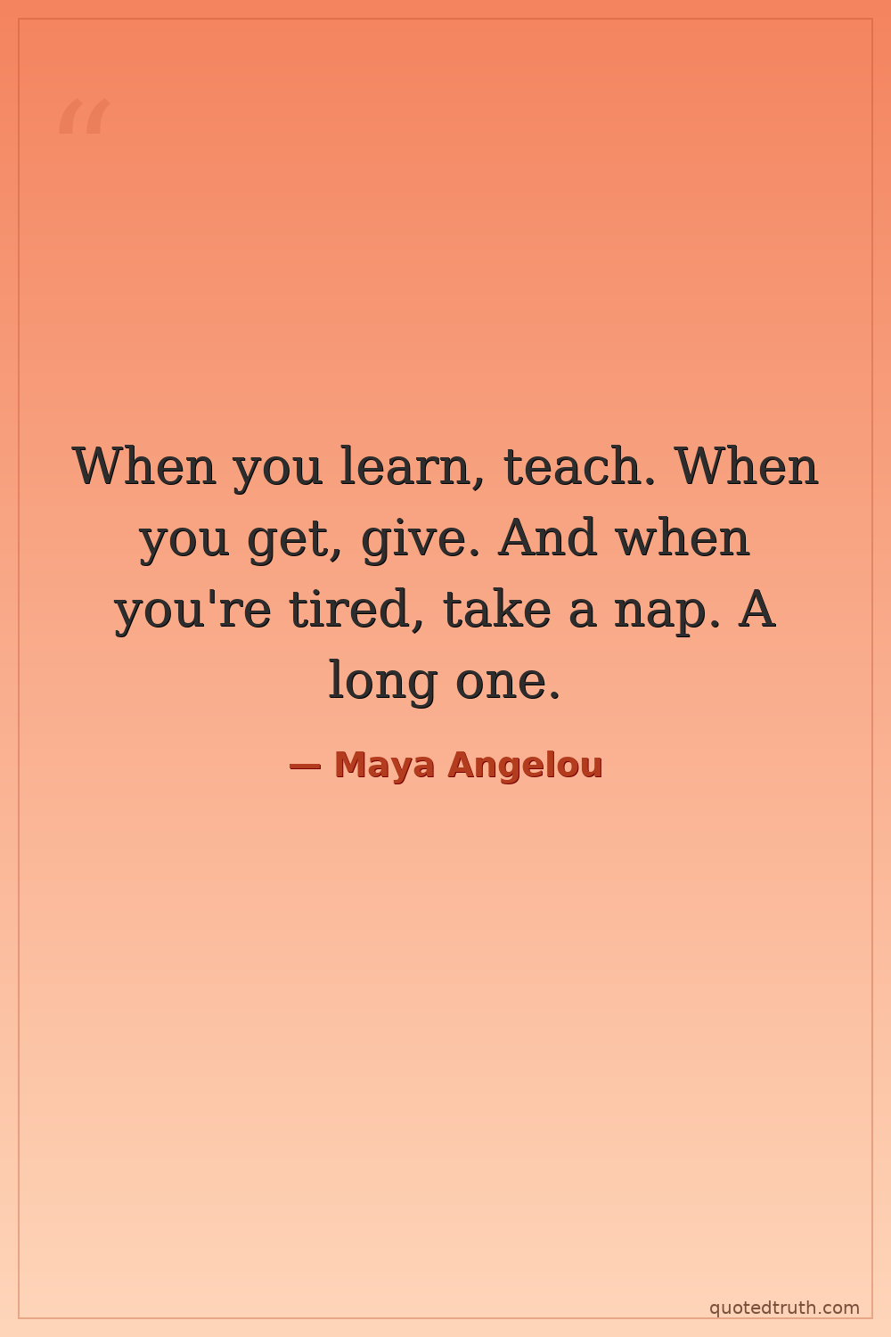 When you learn, teach. When you get, give. And when you're tired, take a nap. A long one.