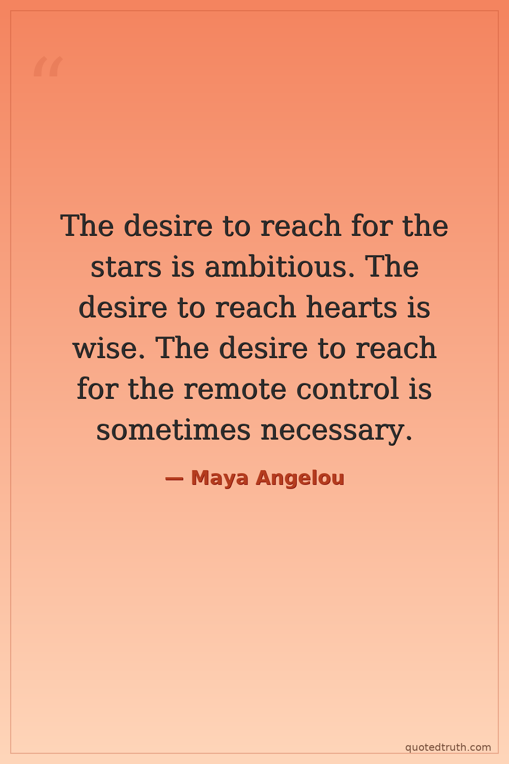 The desire to reach for the stars is ambitious. The desire to reach hearts is wise. The desire to reach for the remote control is sometimes necessary.