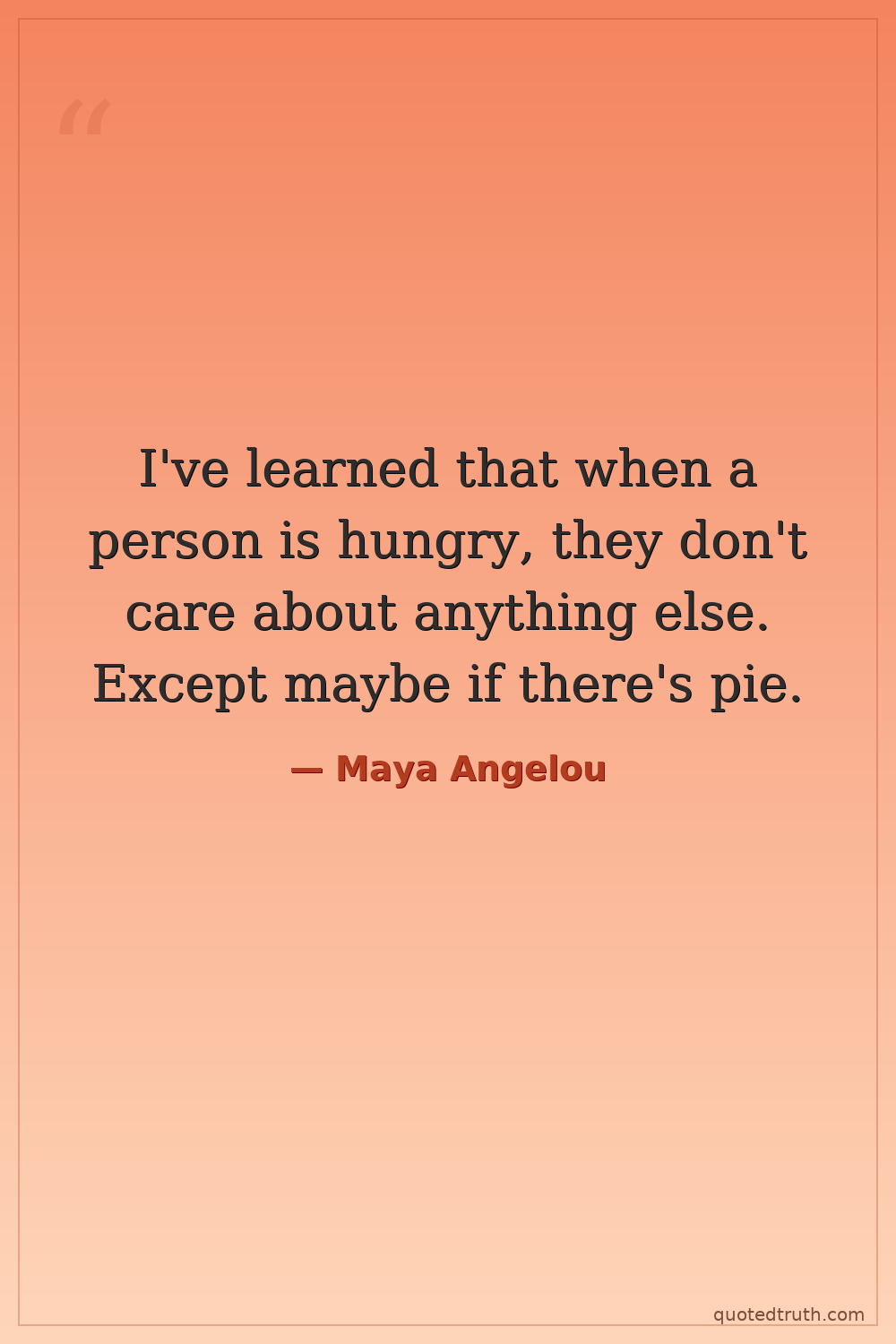 I've learned that when a person is hungry, they don't care about anything else. Except maybe if there's pie.