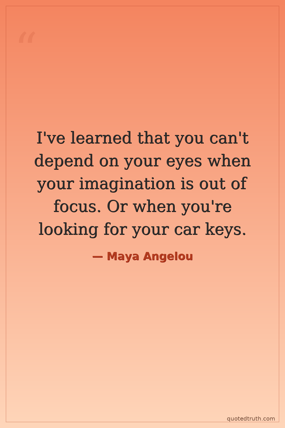 I've learned that you can't depend on your eyes when your imagination is out of focus. Or when you're looking for your car keys.