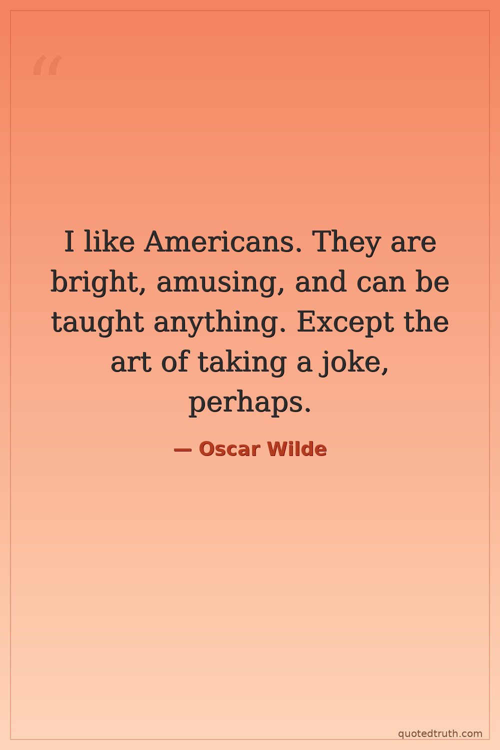 I like Americans. They are bright, amusing, and can be taught anything. Except the art of taking a joke, perhaps.