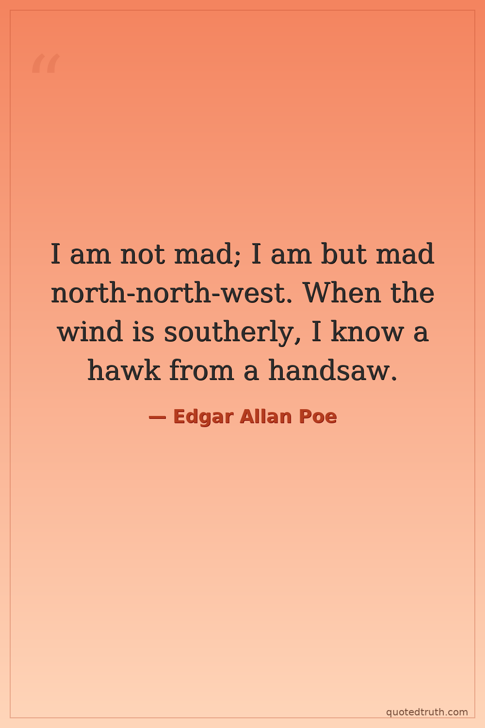 I am not mad; I am but mad north-north-west. When the wind is southerly, I know a hawk from a handsaw.