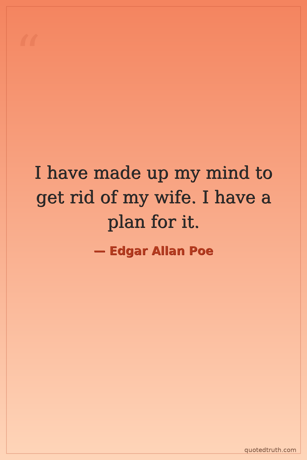 I have made up my mind to get rid of my wife. I have a plan for it.