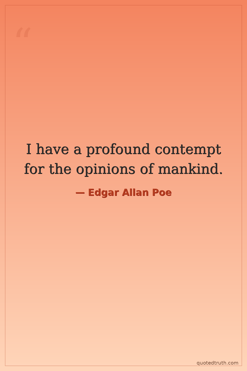 I have a profound contempt for the opinions of mankind.