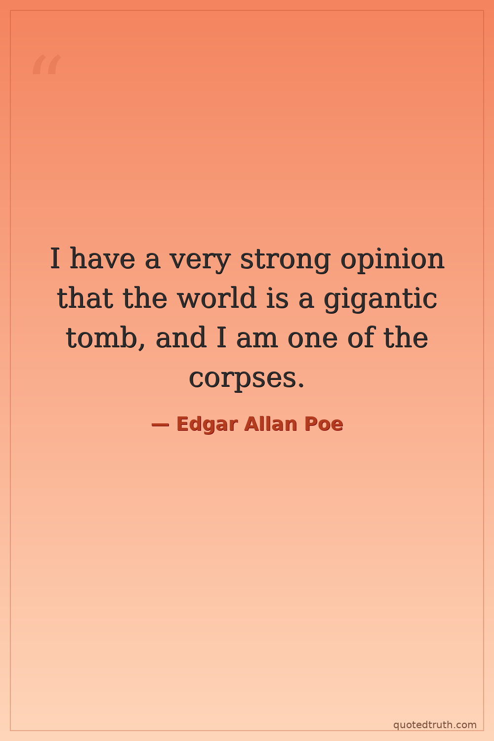 I have a very strong opinion that the world is a gigantic tomb, and I am one of the corpses.