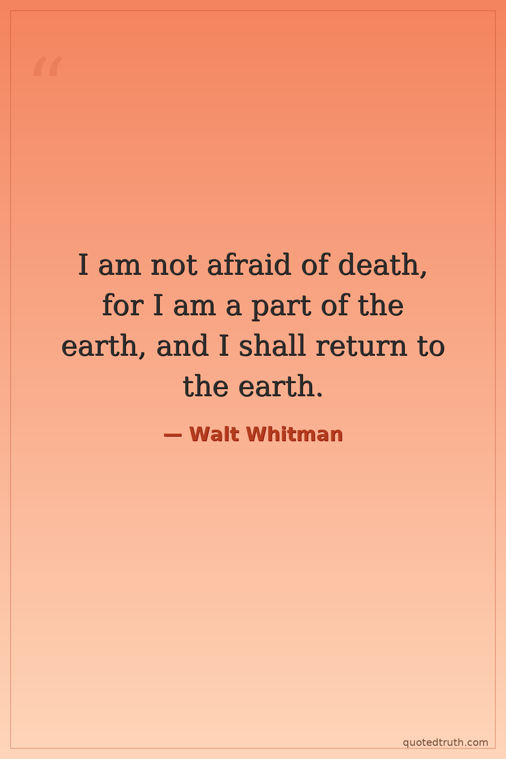 I am not afraid of death, for I am a part of the earth, and I shall return to the earth.
