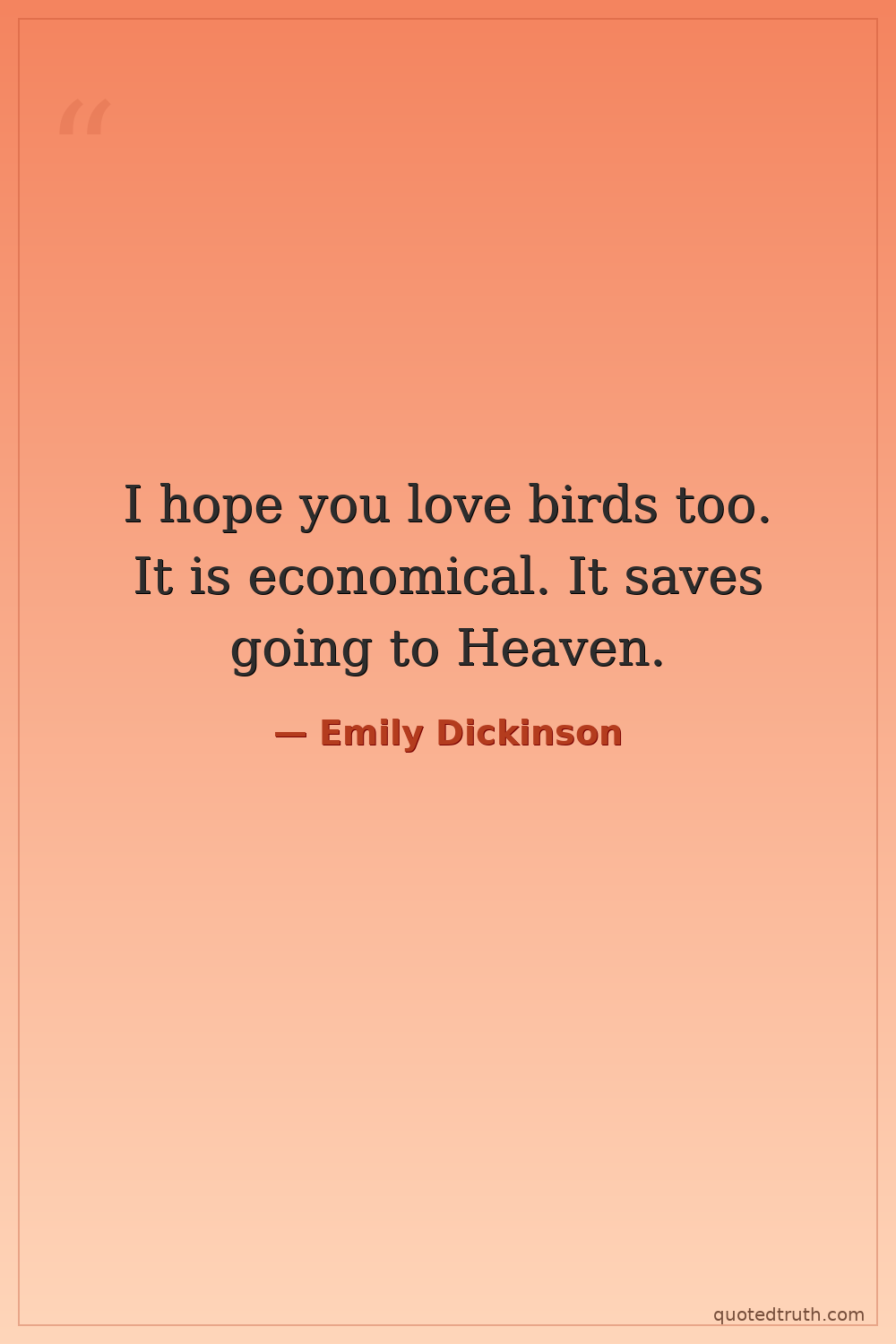 I hope you love birds too. It is economical. It saves going to Heaven.