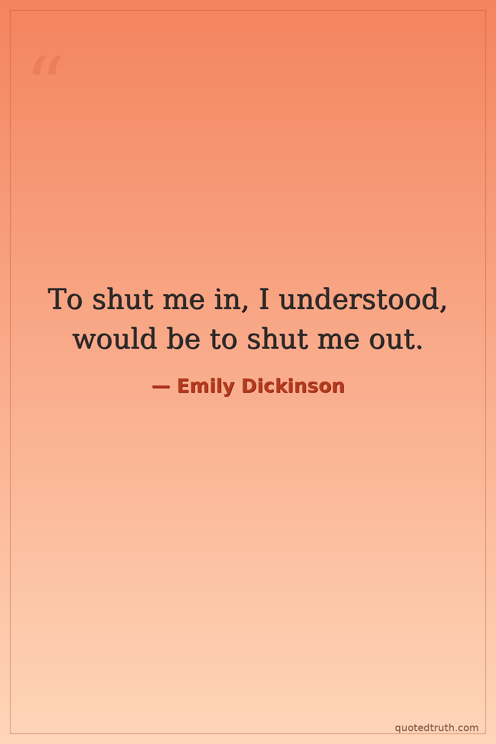 To shut me in, I understood, would be to shut me out.