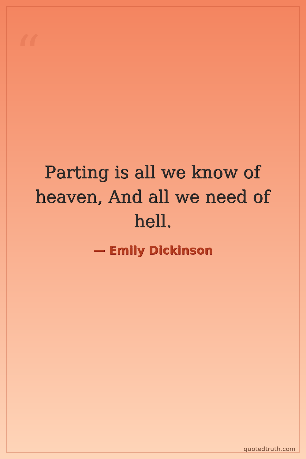Parting is all we know of heaven, And all we need of hell.
