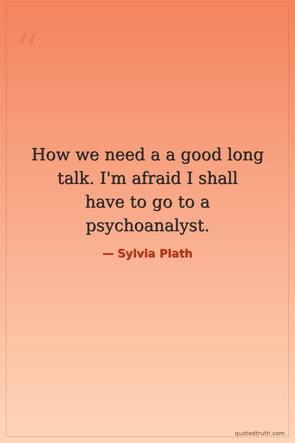 How we need a a good long talk. I'm afraid I shall have to go to a psychoanalyst.