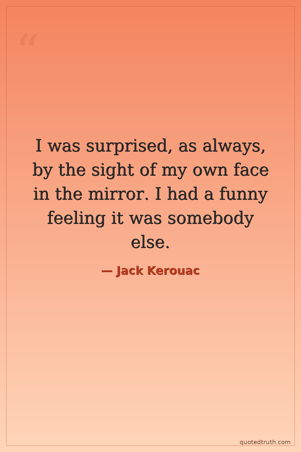 I was surprised, as always, by the sight of my own face in the mirror. I had a funny feeling it was somebody else.