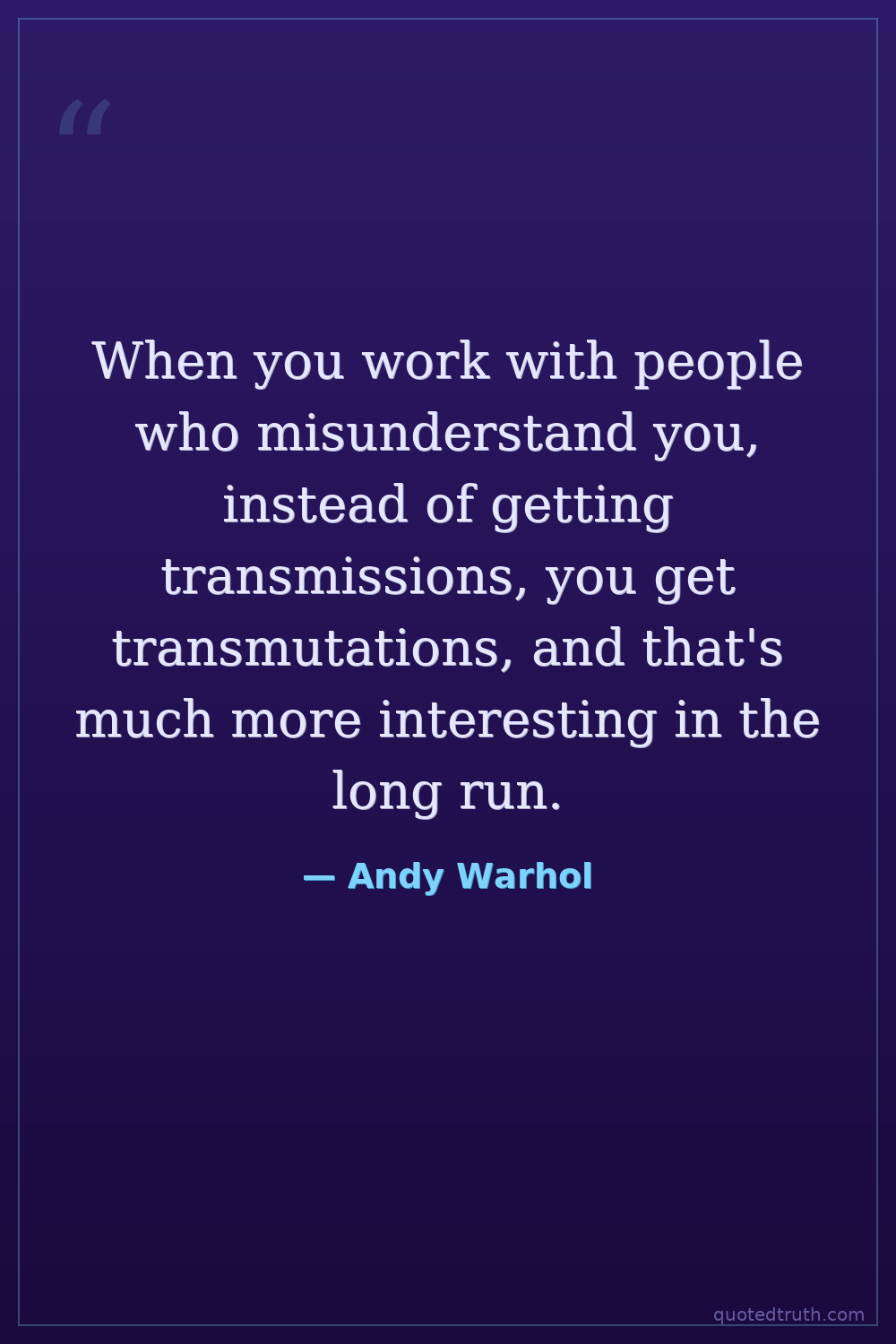 When you work with people who misunderstand you, instead of getting transmissions, you get transmutations, and that's much more interesting in the long run.