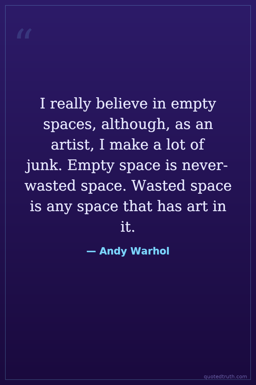 I really believe in empty spaces, although, as an artist, I make a lot of junk. Empty space is never-wasted space. Wasted space is any space that has art in it.