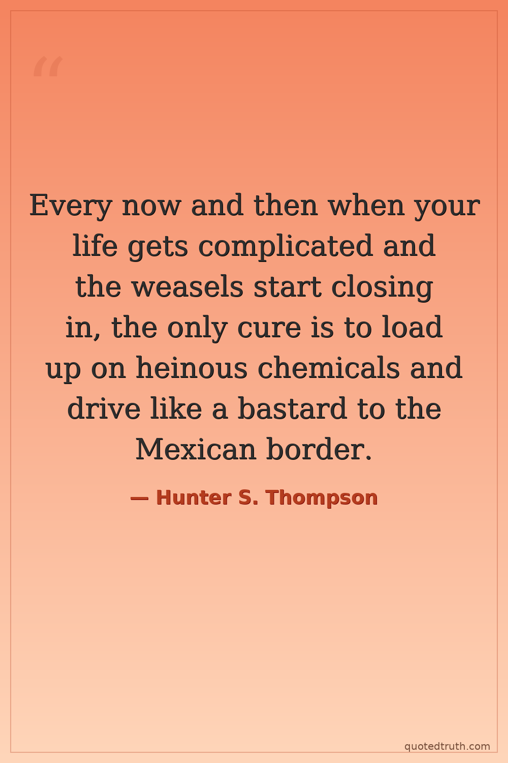 Every now and then when your life gets complicated and the weasels start closing in, the only cure is to load up on heinous chemicals and drive like a bastard to the Mexican border.