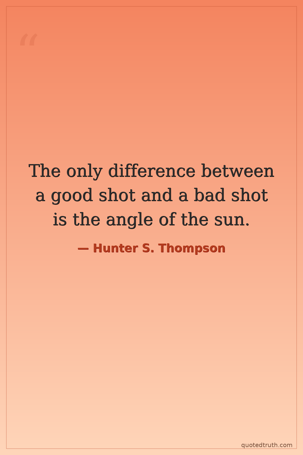 The only difference between a good shot and a bad shot is the angle of the sun.
