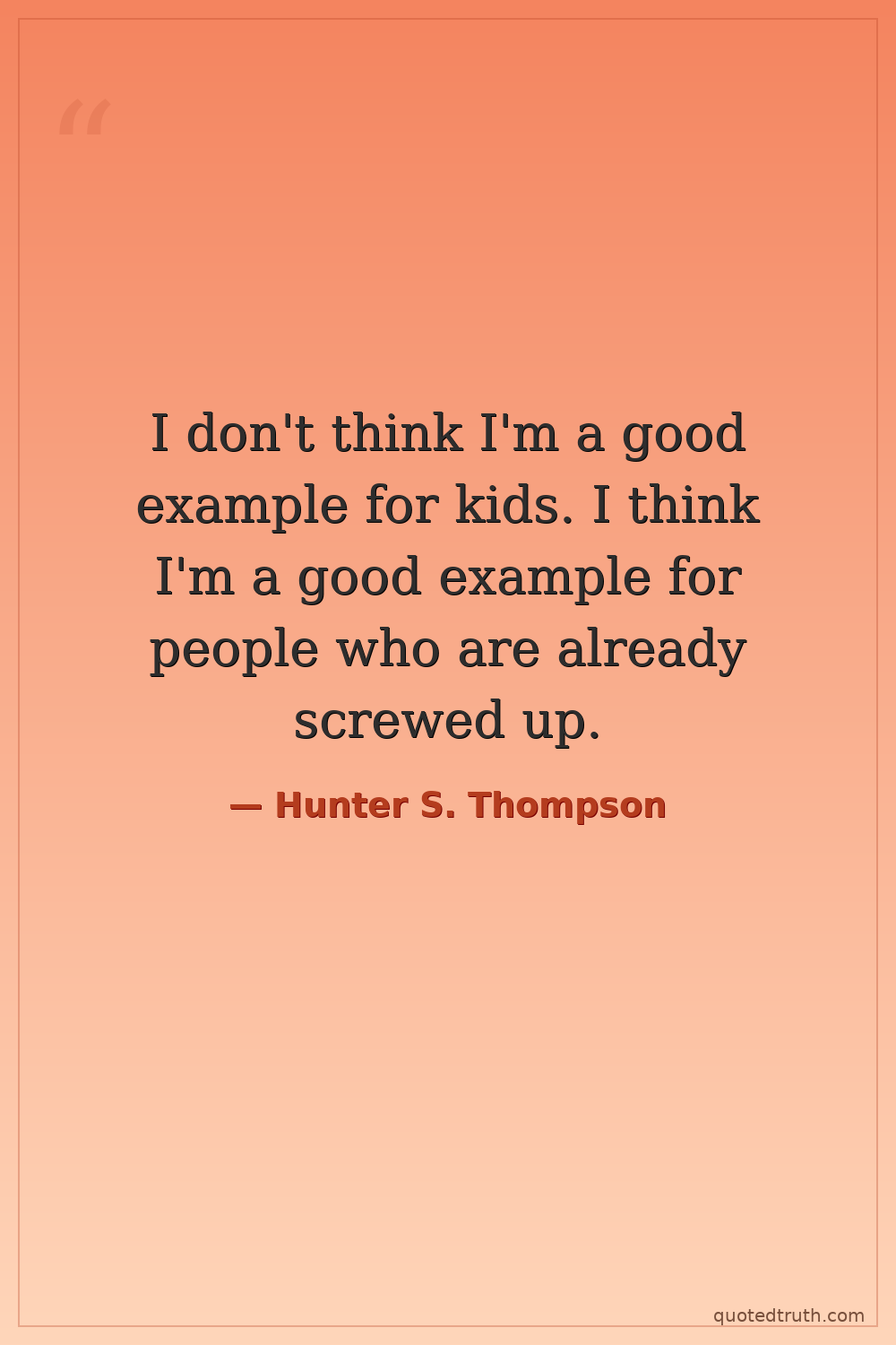 I don't think I'm a good example for kids. I think I'm a good example for people who are already screwed up.