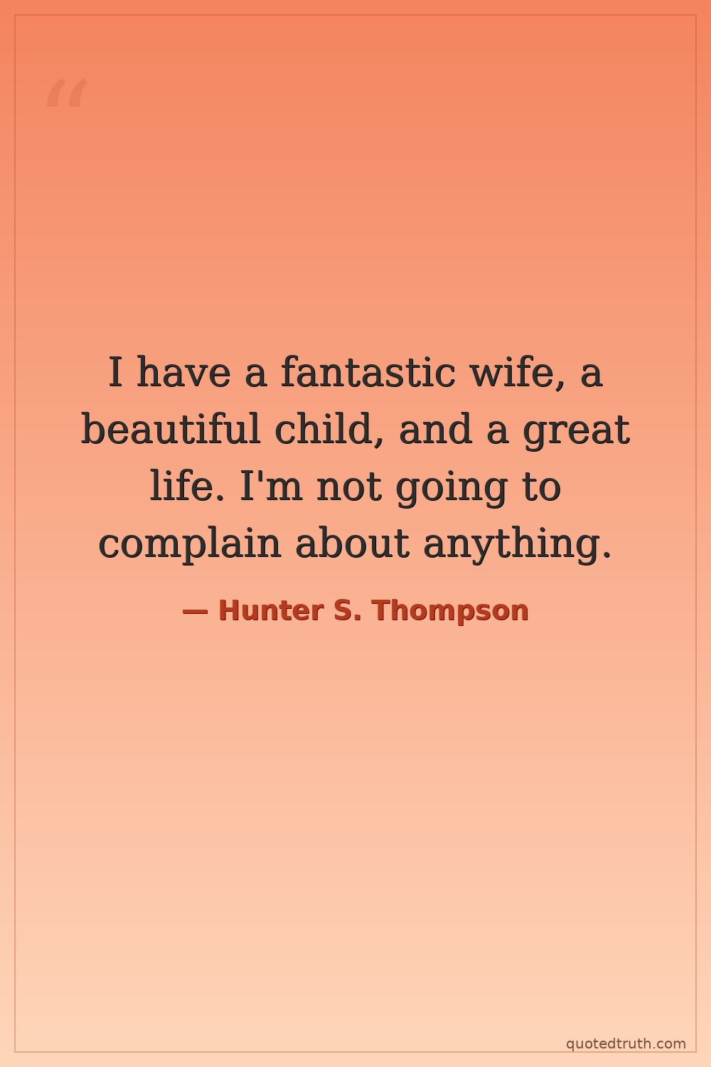 I have a fantastic wife, a beautiful child, and a great life. I'm not going to complain about anything.