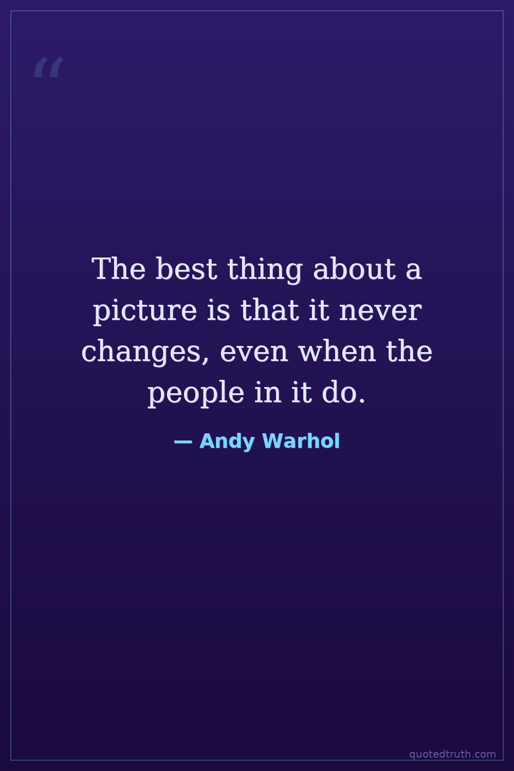 The best thing about a picture is that it never changes, even when the people in it do.