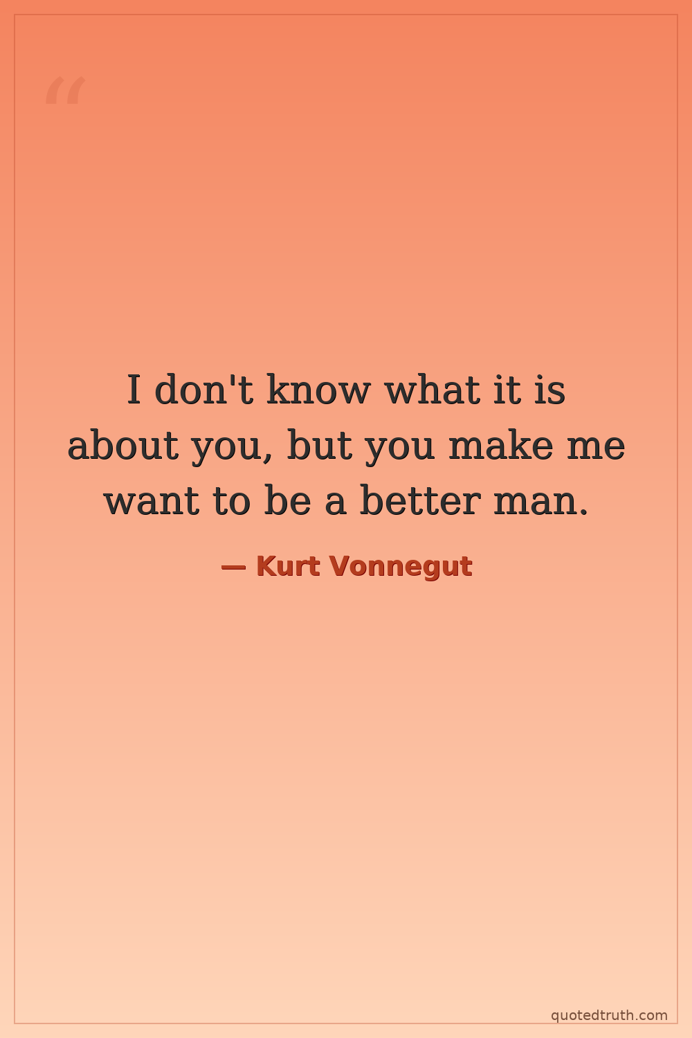 I don't know what it is about you, but you make me want to be a better man.