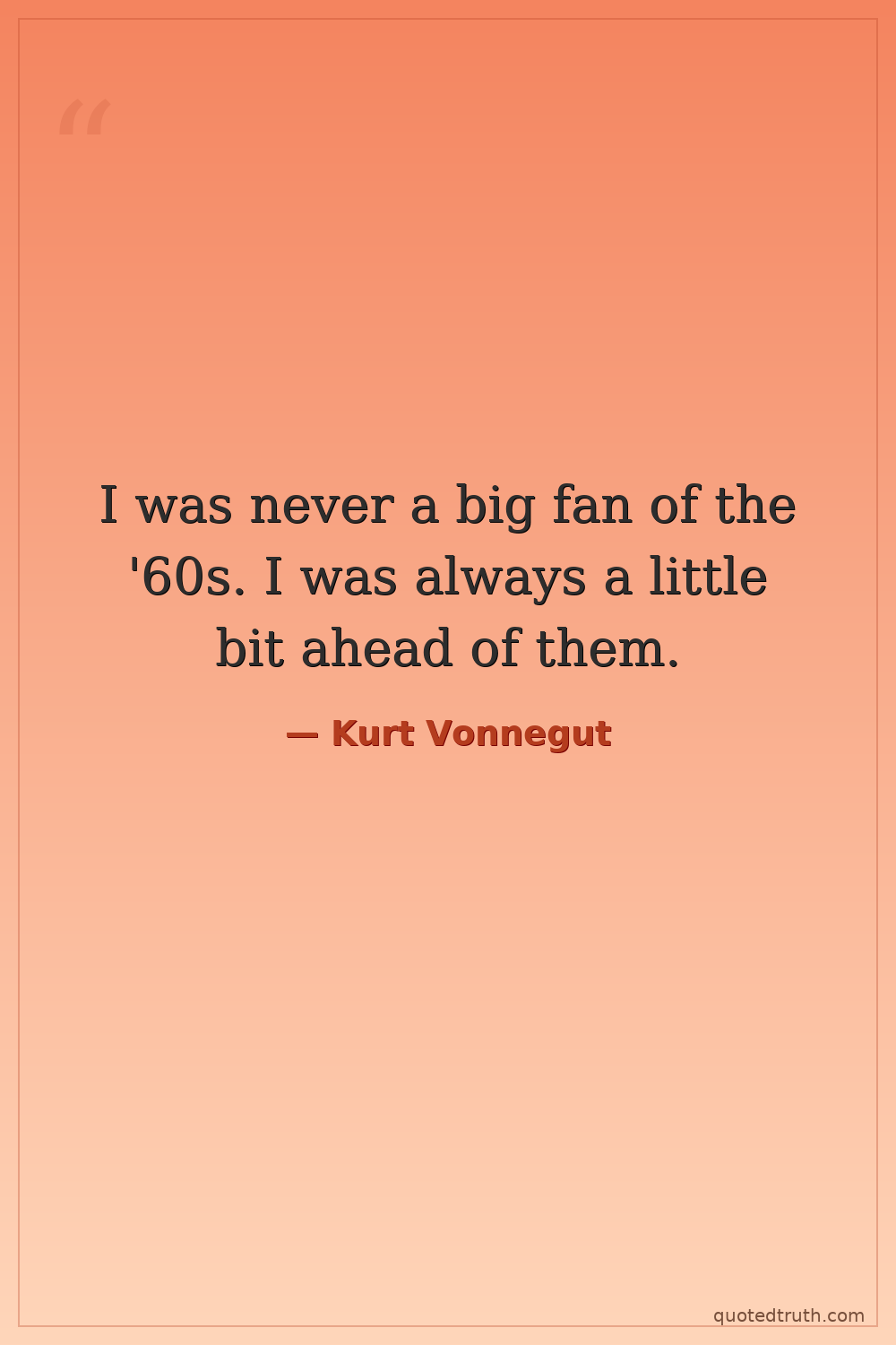 I was never a big fan of the '60s. I was always a little bit ahead of them.