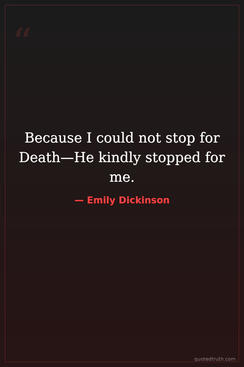 Because I could not stop for Death—He kindly stopped for me.