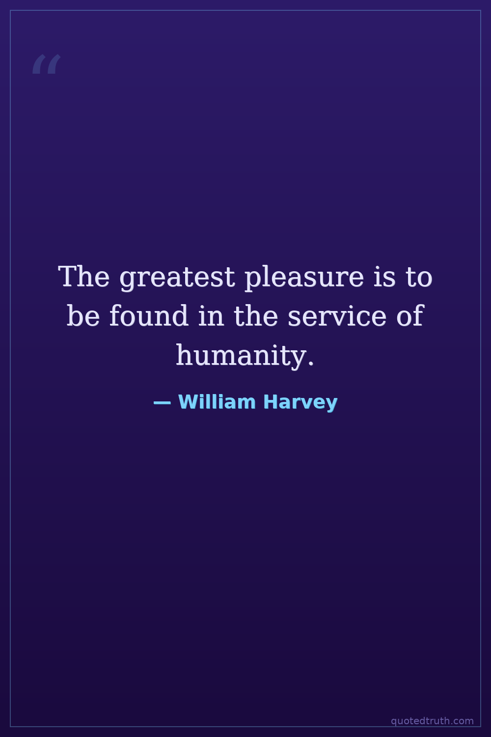 The greatest pleasure is to be found in the service of humanity.
