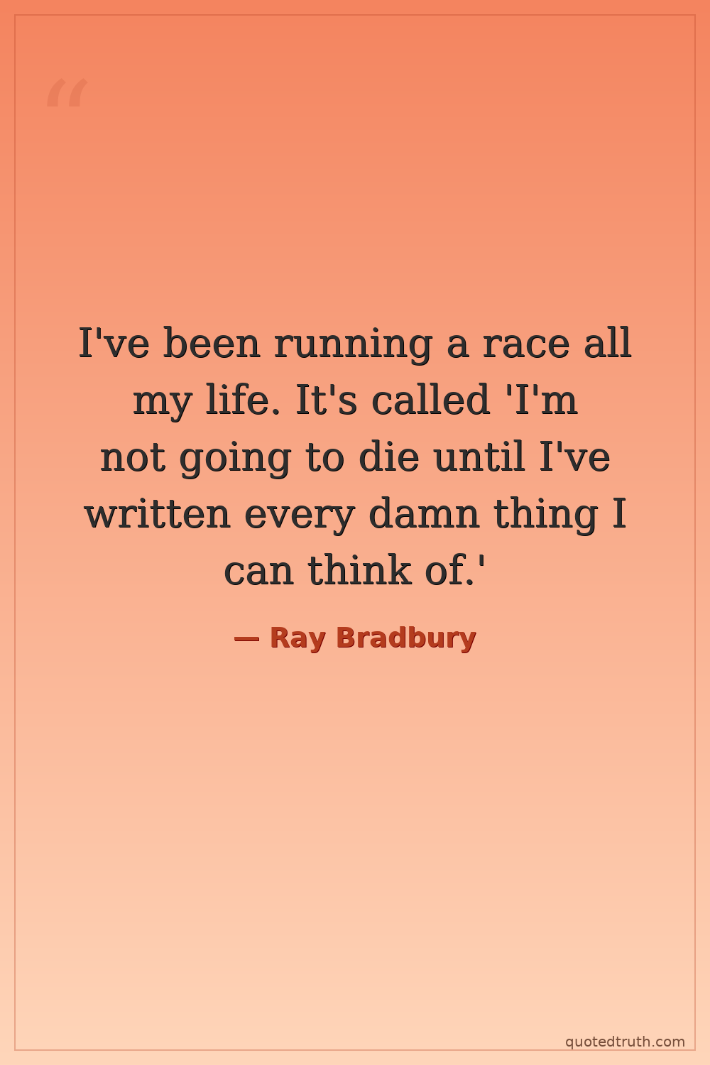 I've been running a race all my life. It's called 'I'm not going to die until I've written every damn thing I can think of.'