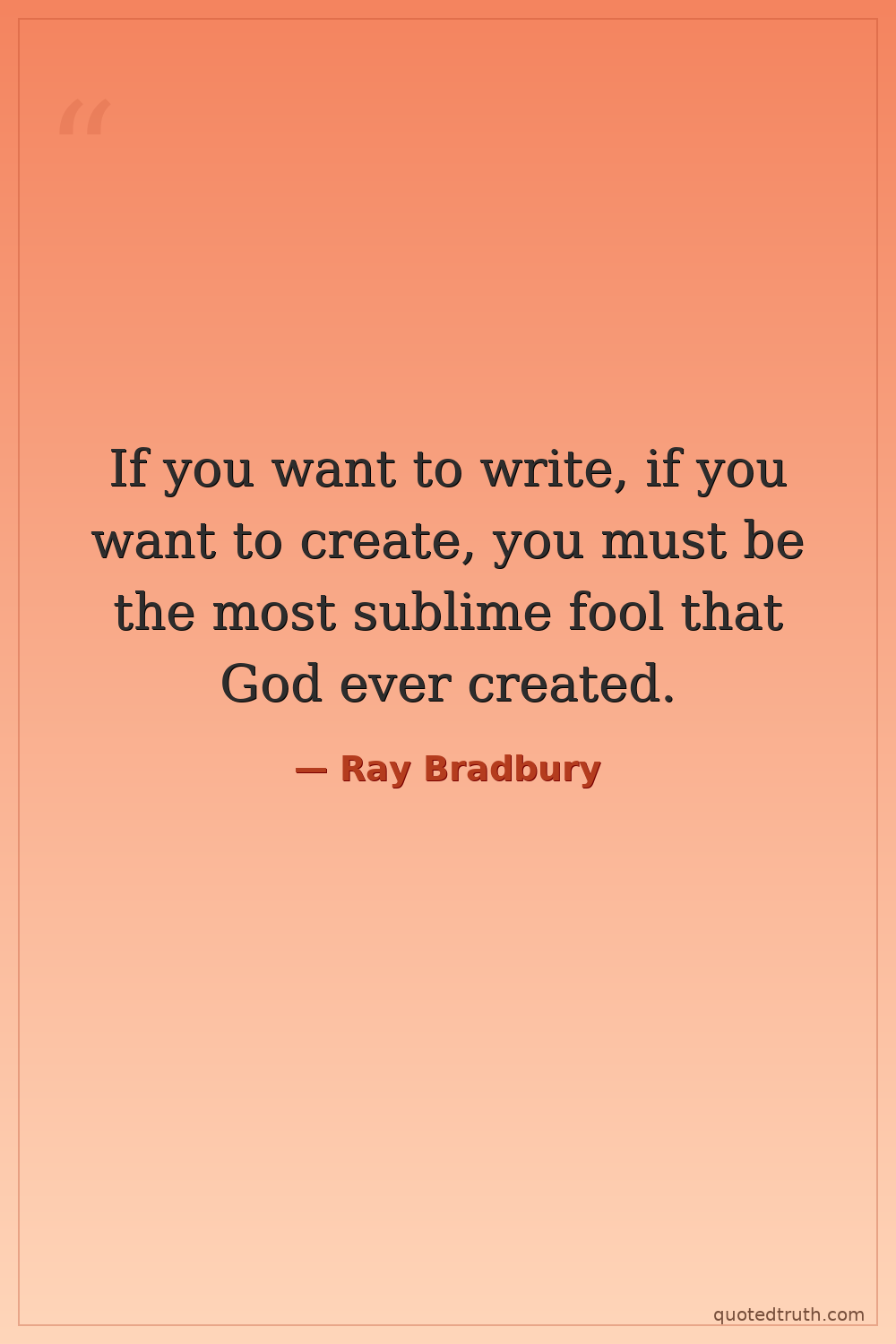 If you want to write, if you want to create, you must be the most sublime fool that God ever created.