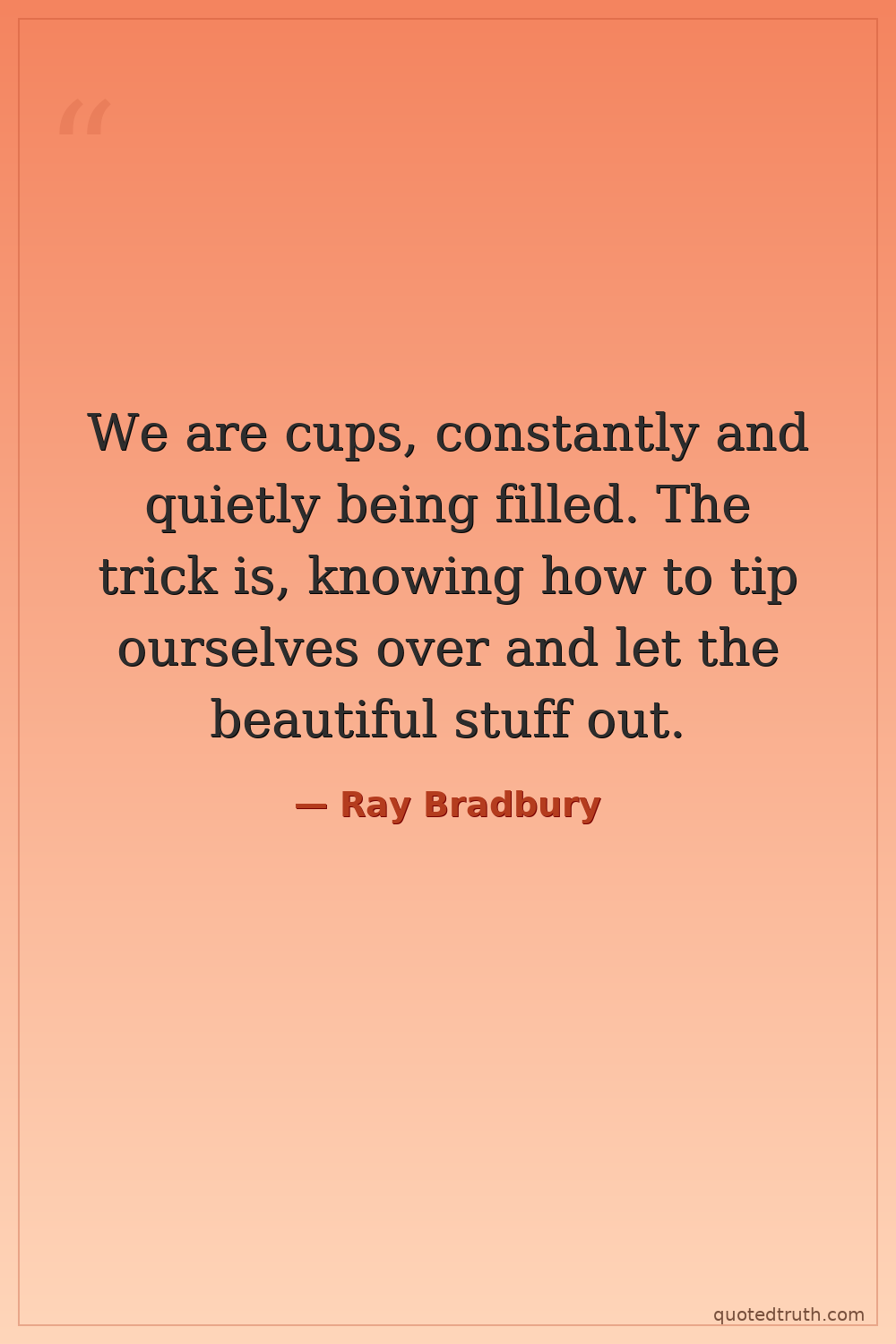 We are cups, constantly and quietly being filled. The trick is, knowing how to tip ourselves over and let the beautiful stuff out.