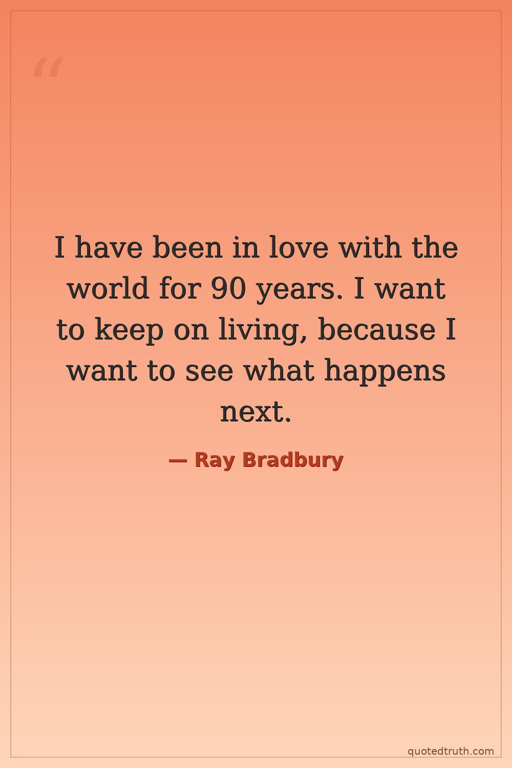 I have been in love with the world for 90 years. I want to keep on living, because I want to see what happens next.