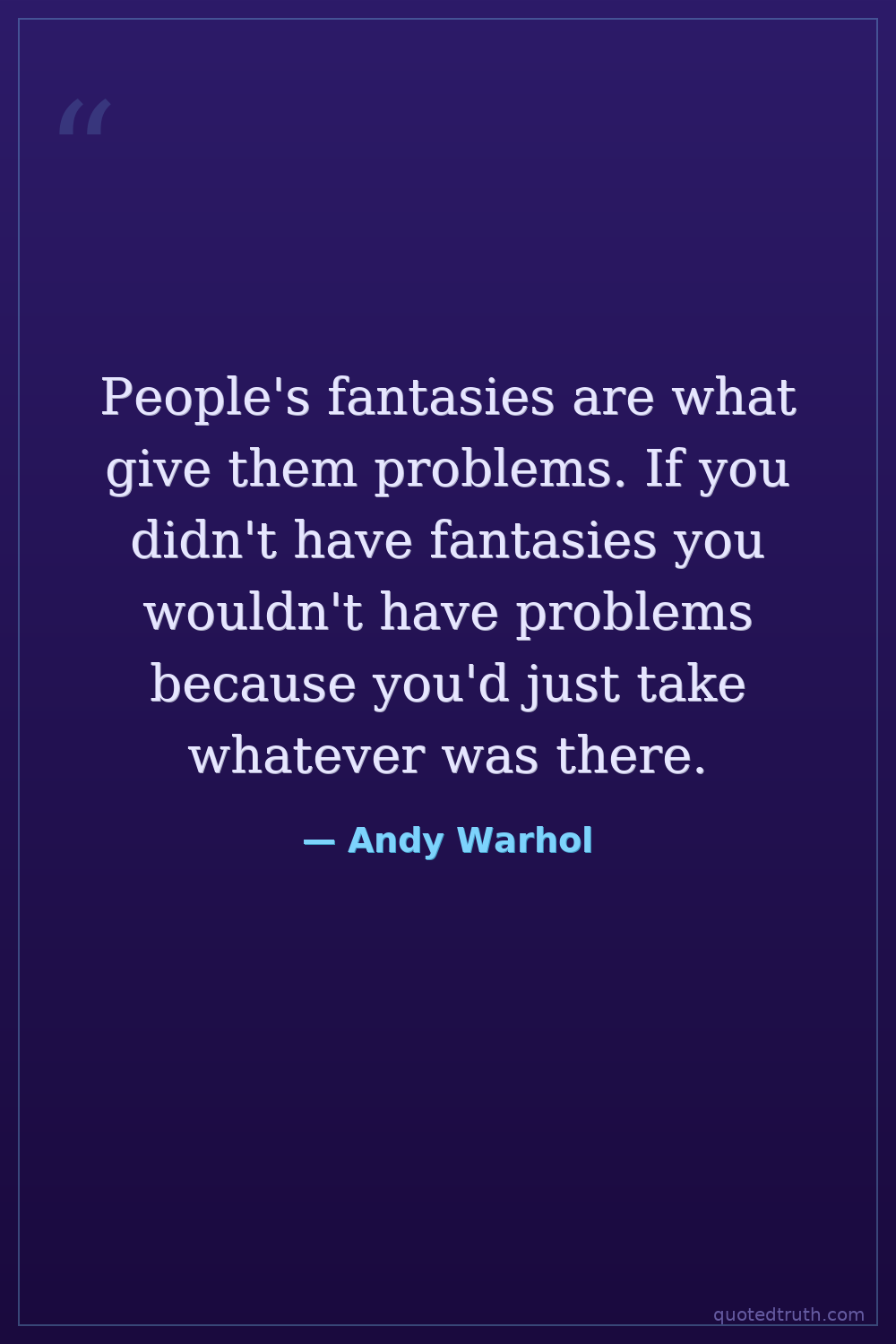 People's fantasies are what give them problems. If you didn't have fantasies you wouldn't have problems because you'd just take whatever was there.