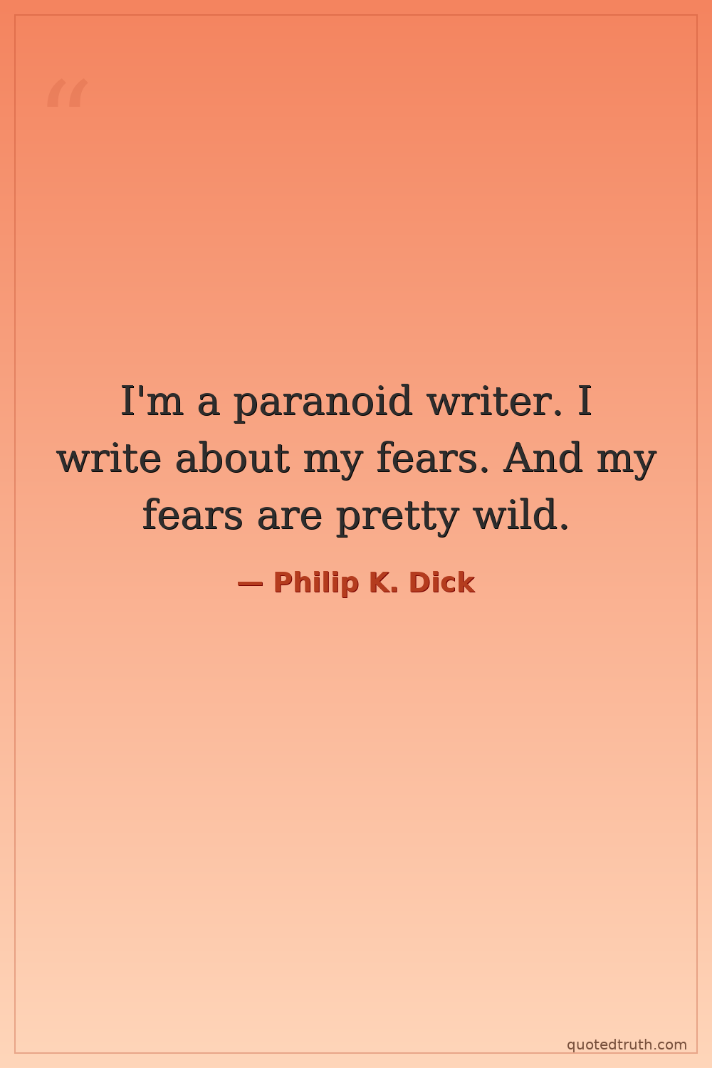 I'm a paranoid writer. I write about my fears. And my fears are pretty wild.