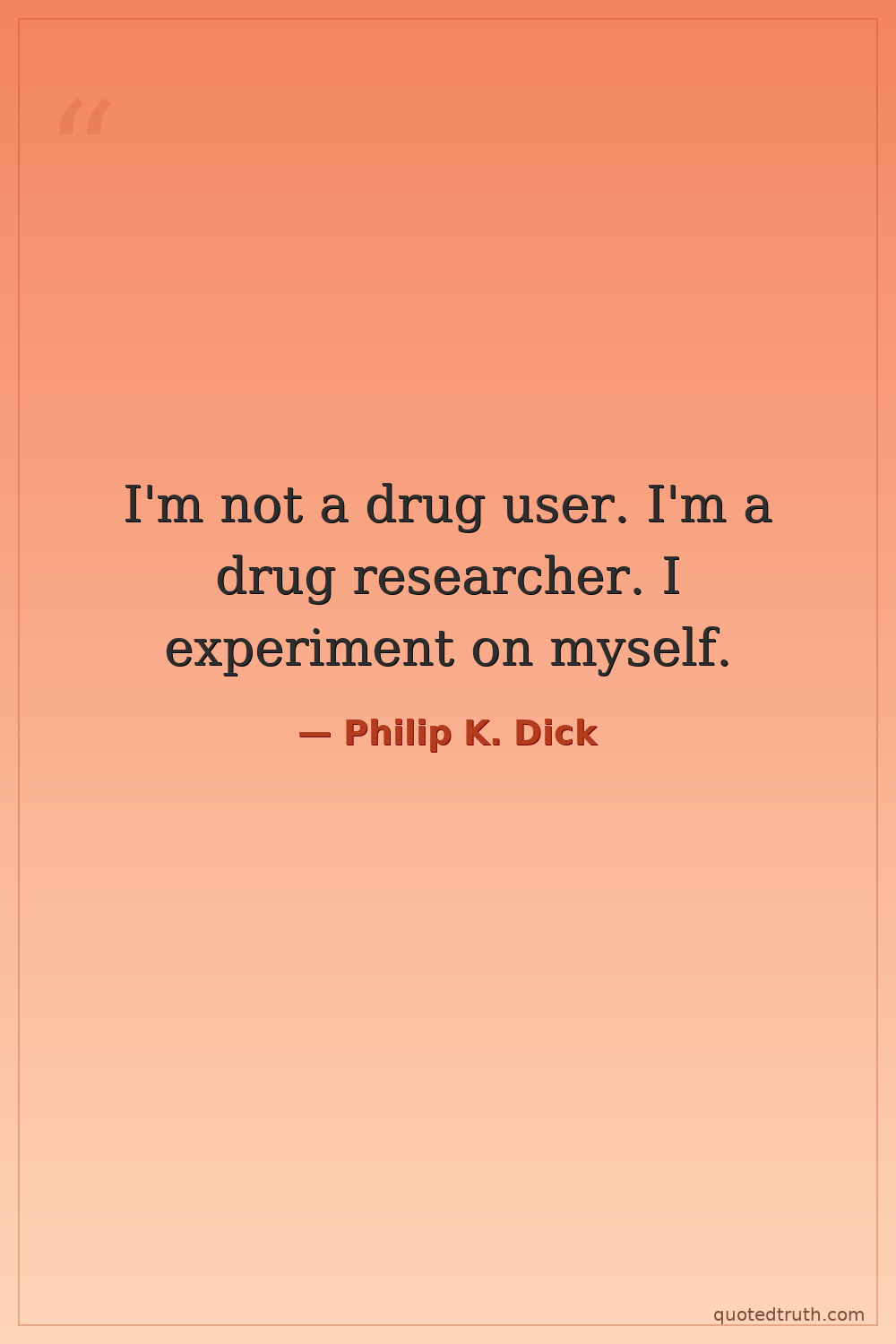 I'm not a drug user. I'm a drug researcher. I experiment on myself.