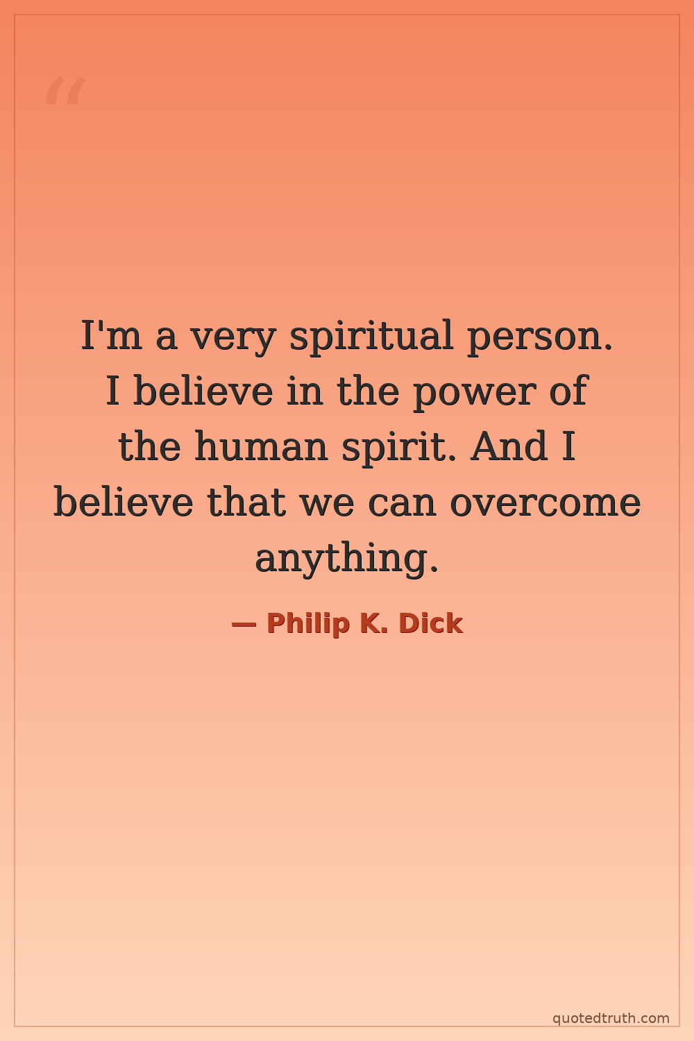 I'm a very spiritual person. I believe in the power of the human spirit. And I believe that we can overcome anything.