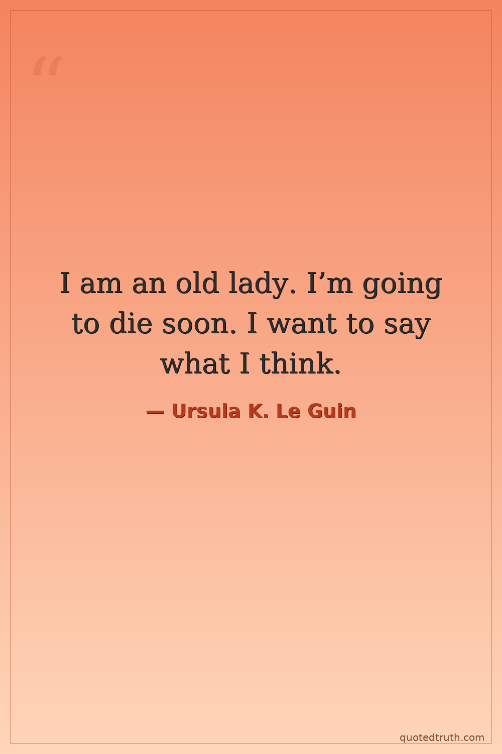 I am an old lady. I’m going to die soon. I want to say what I think.