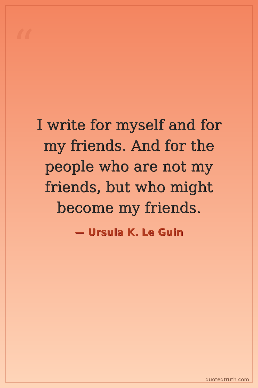 I write for myself and for my friends. And for the people who are not my friends, but who might become my friends.