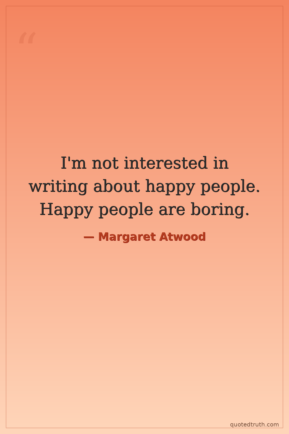 I'm not interested in writing about happy people. Happy people are boring.
