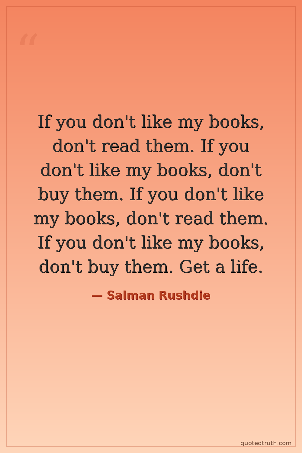 If you don't like my books, don't read them. If you don't like my books, don't buy them. If you don't like my books, don't read them. If you don't like my books, don't buy them. Get a life.
