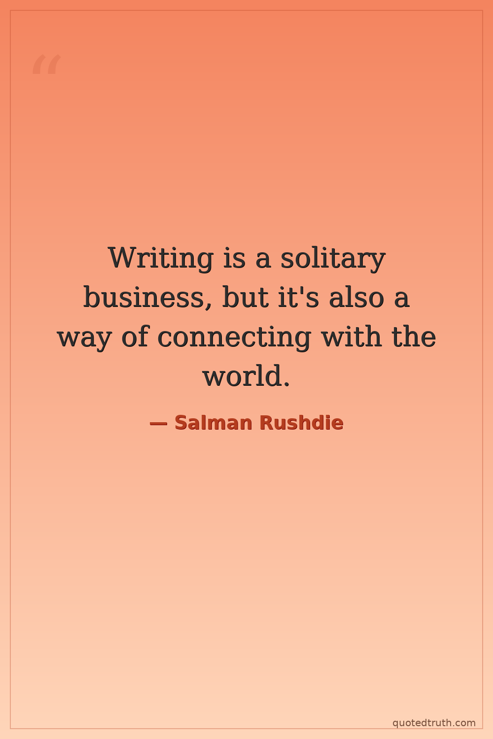 Writing is a solitary business, but it's also a way of connecting with the world.