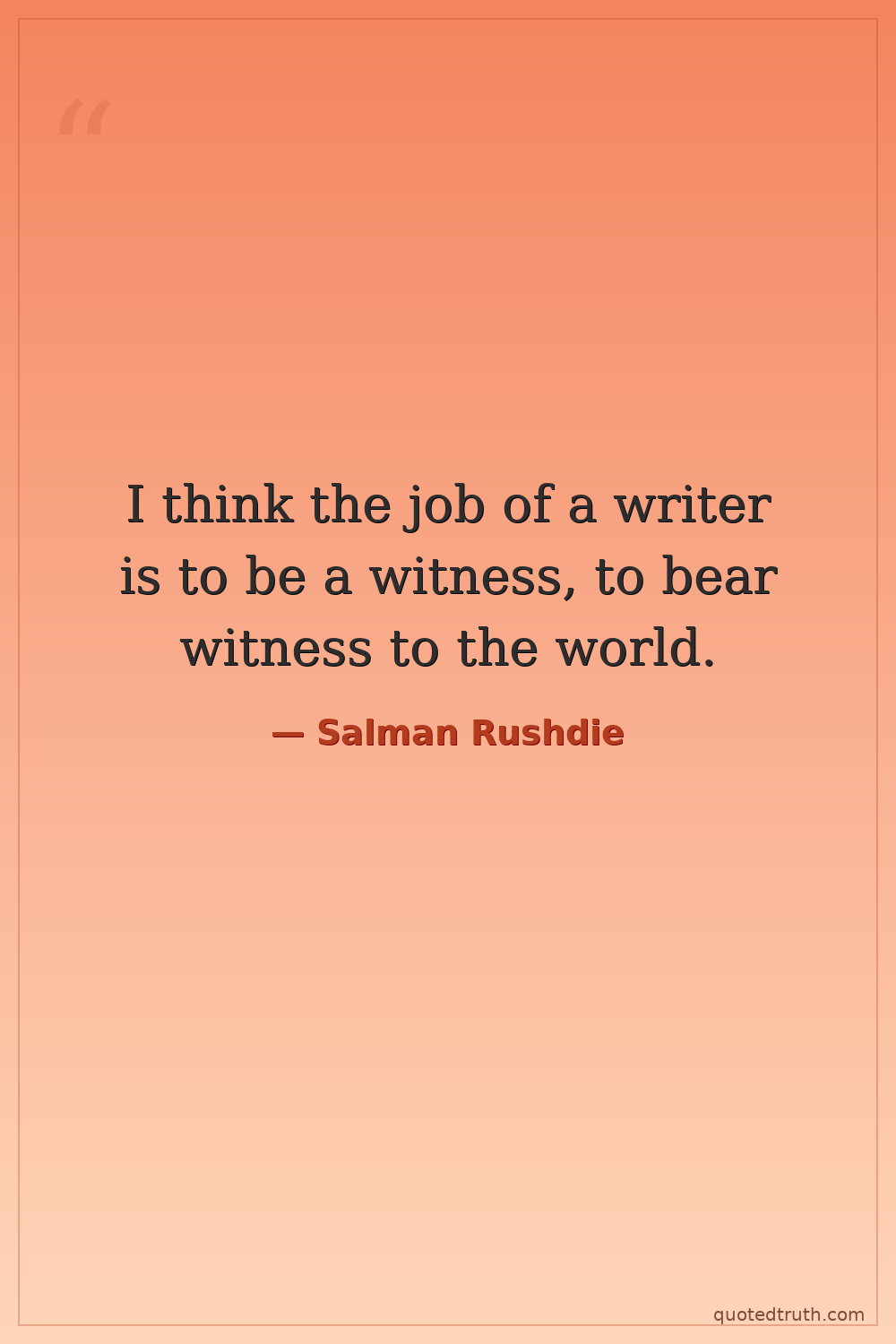 I think the job of a writer is to be a witness, to bear witness to the world.