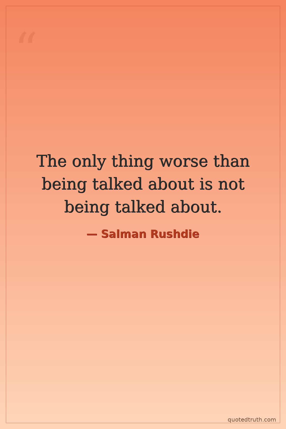 The only thing worse than being talked about is not being talked about.