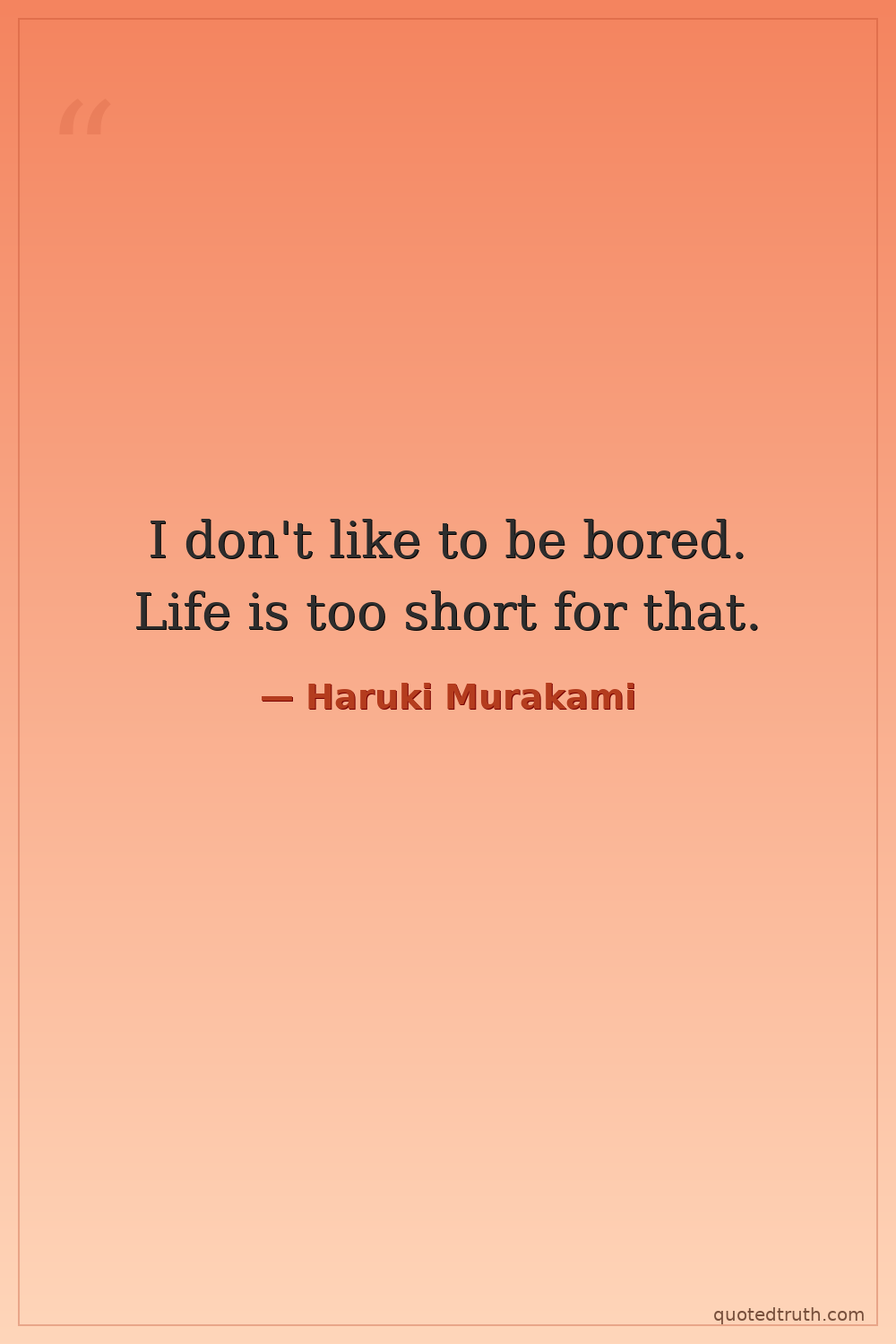 I don't like to be bored. Life is too short for that.