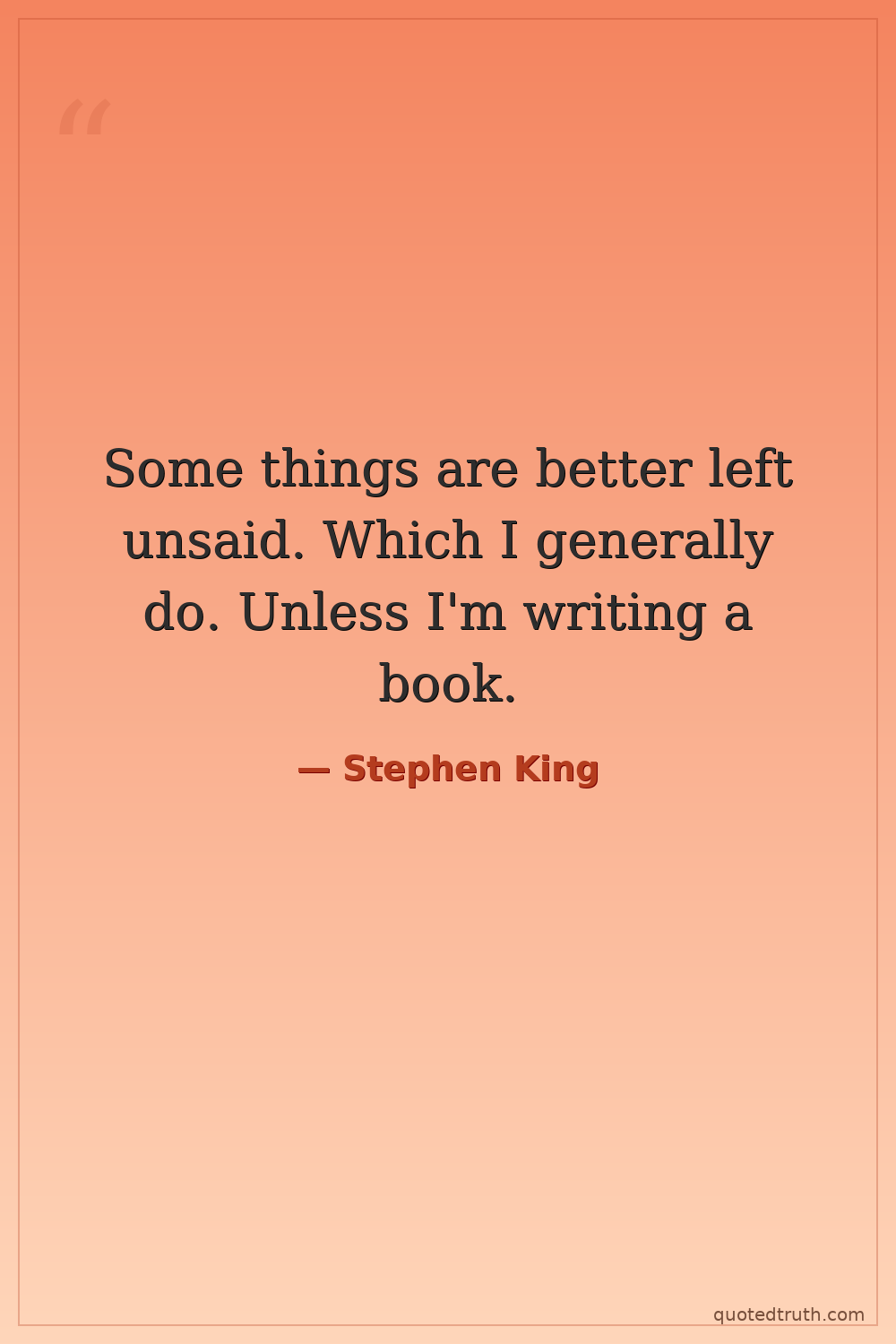 Some things are better left unsaid. Which I generally do. Unless I'm writing a book.