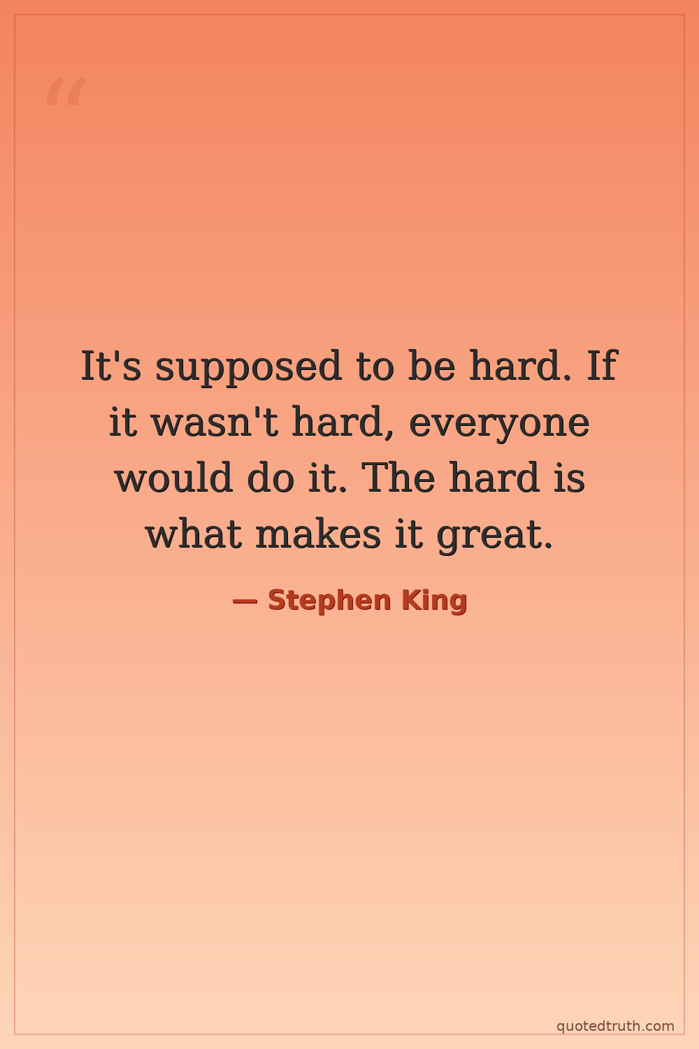 It's supposed to be hard. If it wasn't hard, everyone would do it. The hard is what makes it great.