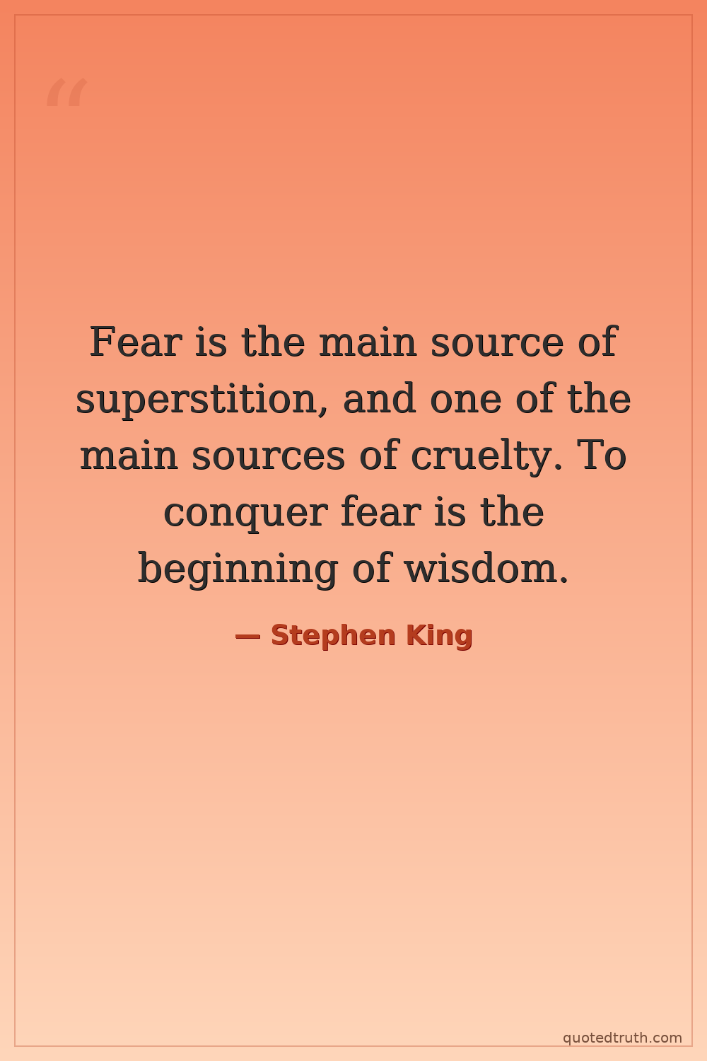 Fear is the main source of superstition, and one of the main sources of cruelty. To conquer fear is the beginning of wisdom.