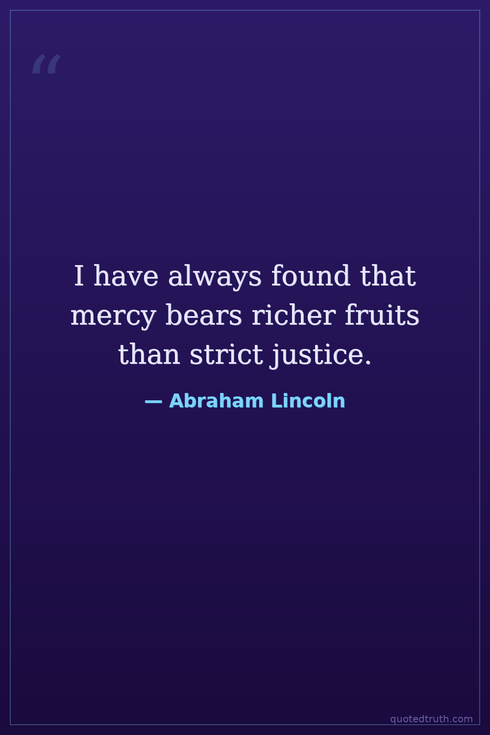 I have always found that mercy bears richer fruits than strict justice.