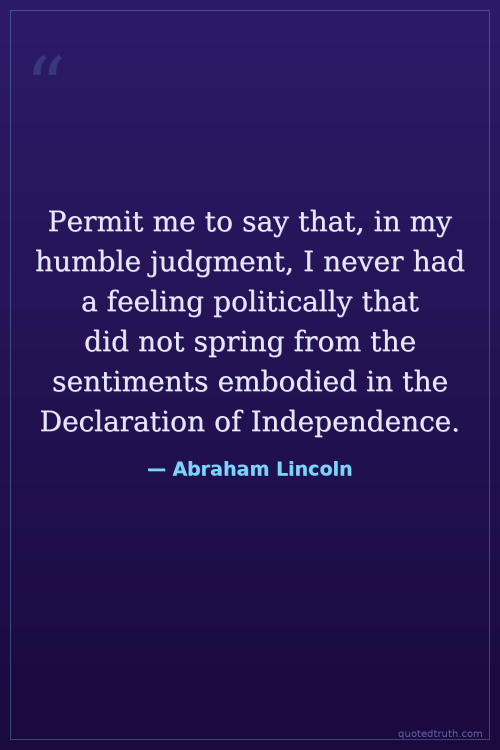 Permit me to say that, in my humble judgment, I never had a feeling politically that did not spring from the sentiments embodied in the Declaration of Independence.