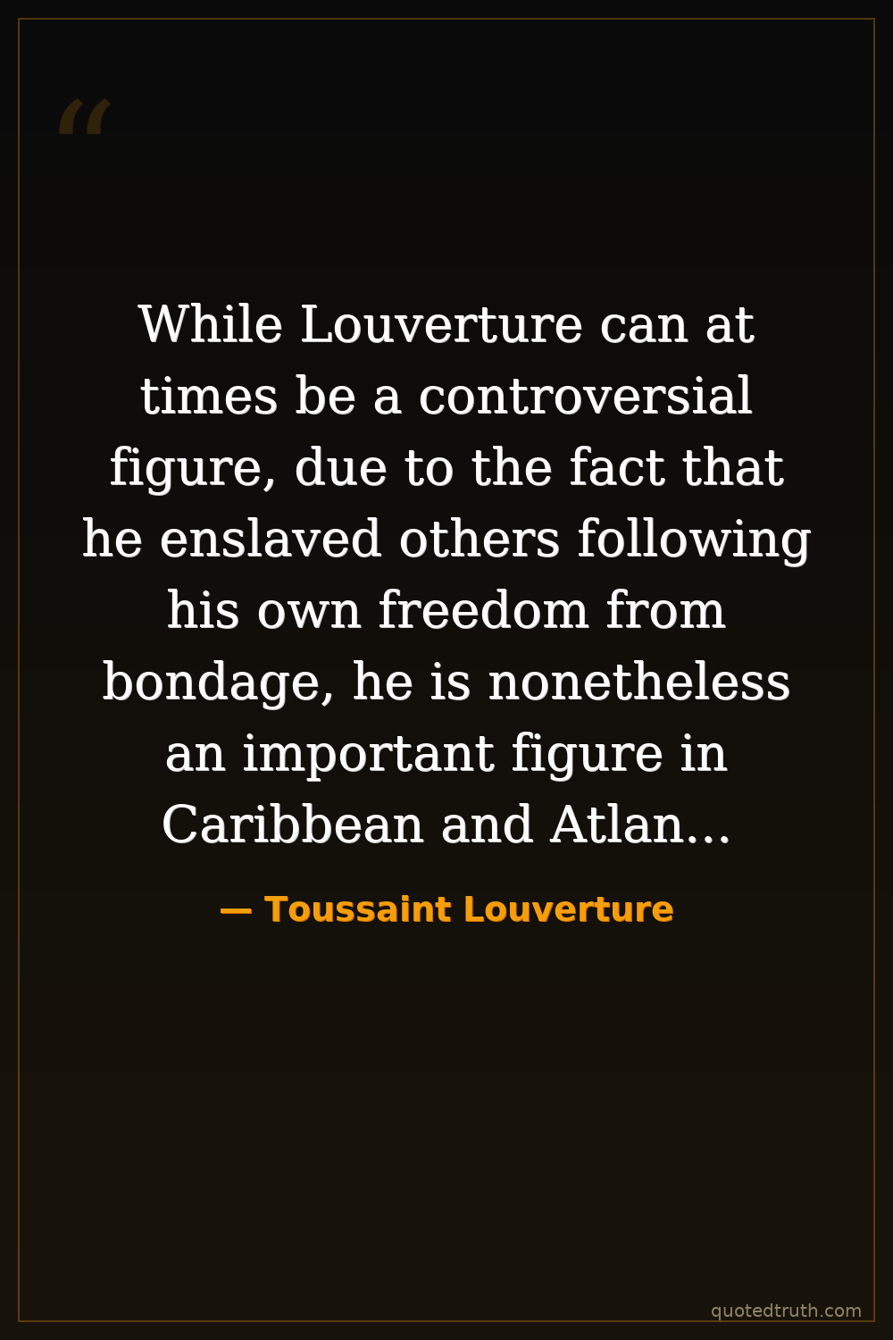 While Louverture can at times be a controversial figure, due to the fact that he enslaved others following his own freedom from bondage, he is nonetheless an important figure in Caribbean and Atlantic history.